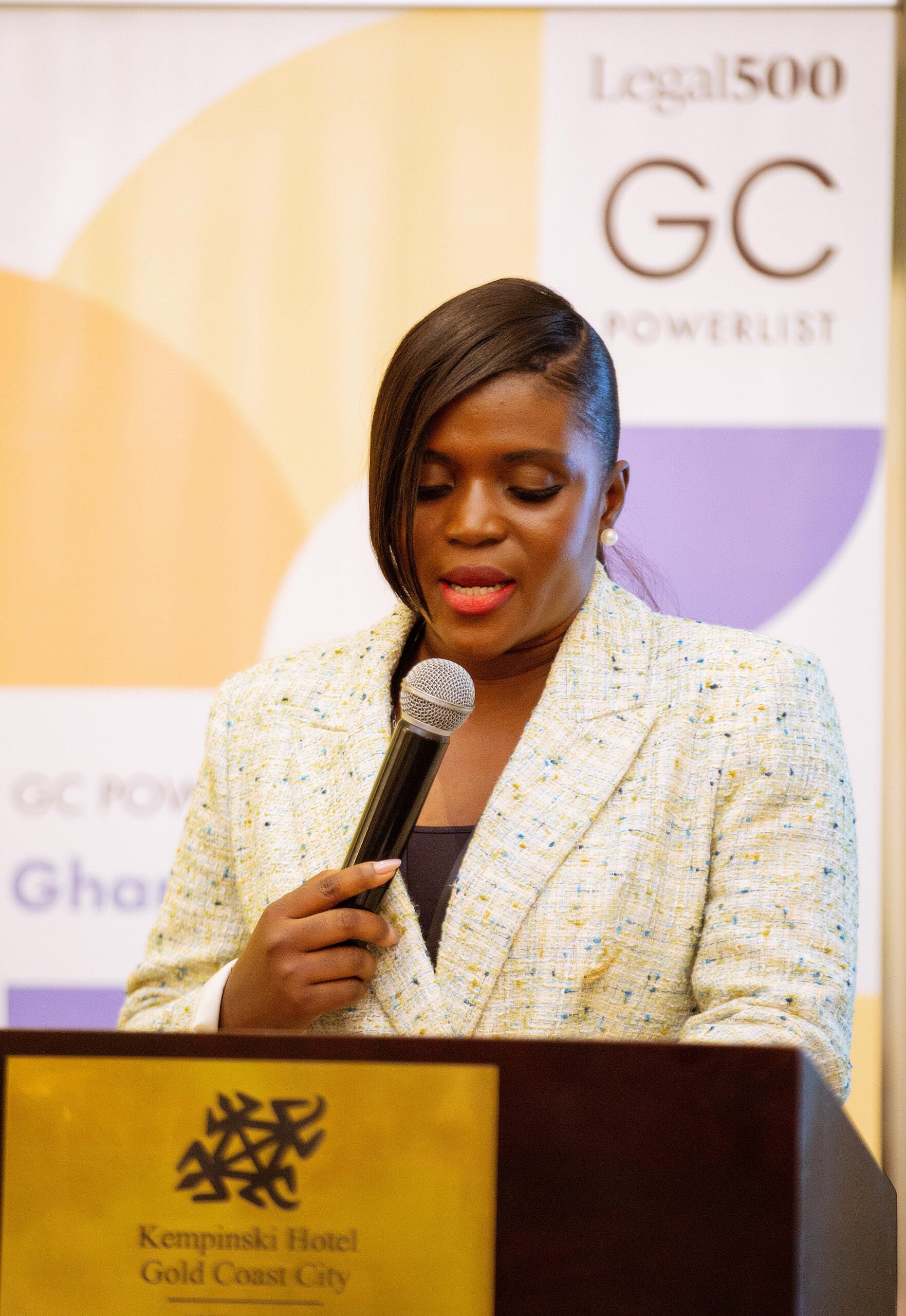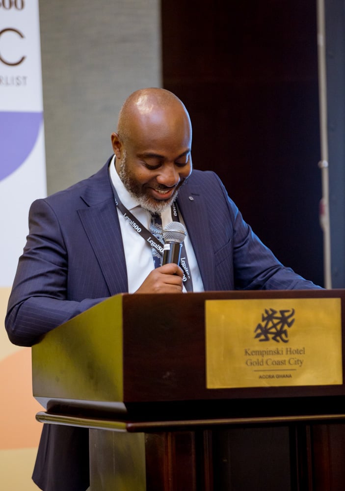 MC Otu welcomed guests before the evening’s programme began with a video introduction from Isabel Caine, Event content editor at Legal 500. Patricia Jane Mumuni, Executive at ENS, then took to the stage to congratulate the successful Powerlisters on behalf of the firm. Caliis Nii Oman Baddoo, Head of legal at the Securities and Exchange Commission, delivered the keynote speech.