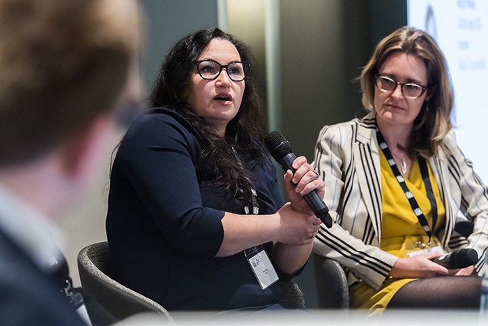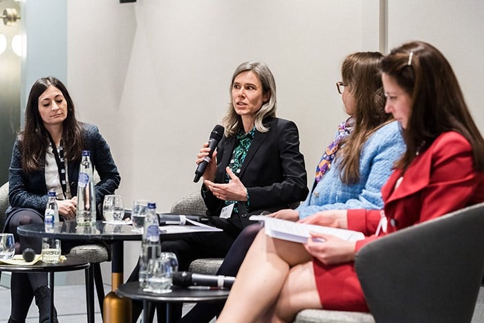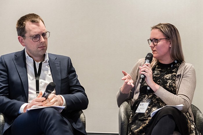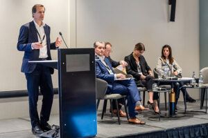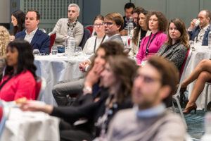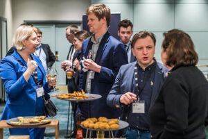 Loyens & Loeff returned for the last panel of the day for a broad-ranging discussion on how companies can best contractually foresee their sustainability targets. Partner Stéphanie De Smedt and senior associate Sarah Benzidi of Loyens & Loeff gave a brief presentation, then sat down with five experts across the spectrum of ESG and sustainability issues. Attendees were still in rapt attention long after the ‘official’ end of the panel session, since Nathan Oseroff-Spicer had to politely request the Q&A continue during the food and drinks reception outside the events space. Attendees then enjoyed an extended conversation with the Loyens & Loeff panellists, as well as drinks and canapés.