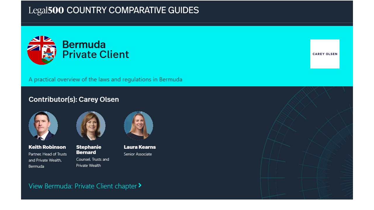 This country-specific Q&A provides an overview of Private Client laws and regulations applicable in Bermuda.