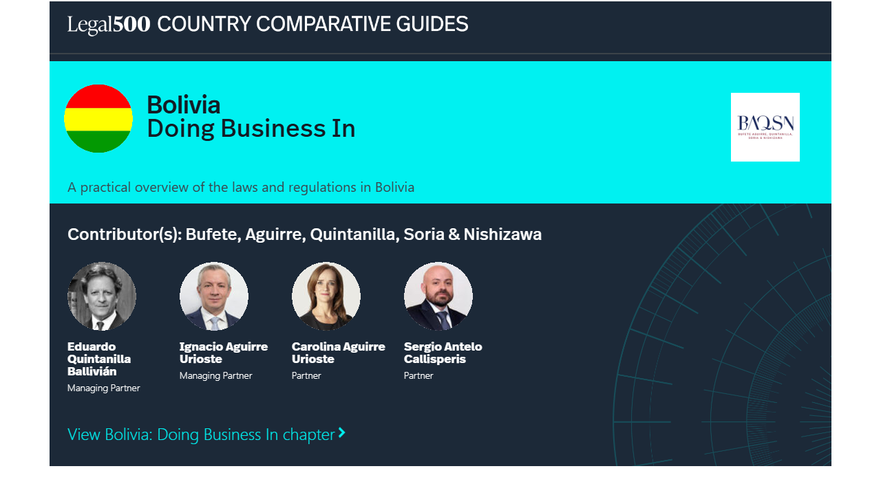 This country-specific Q&A provides an overview of Doing Business In laws and regulations applicable in Bolivia.