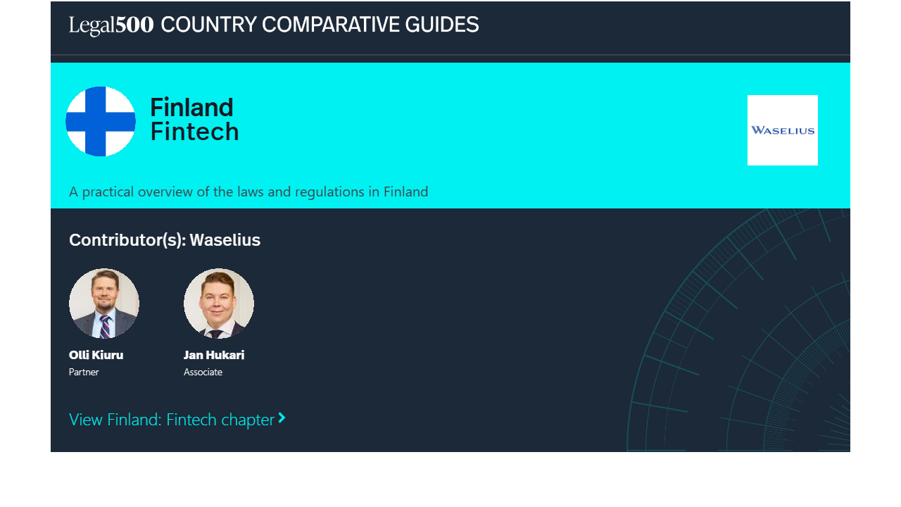 This country-specific Q&A provides an overview of Fintech laws and regulations applicable in Finland.