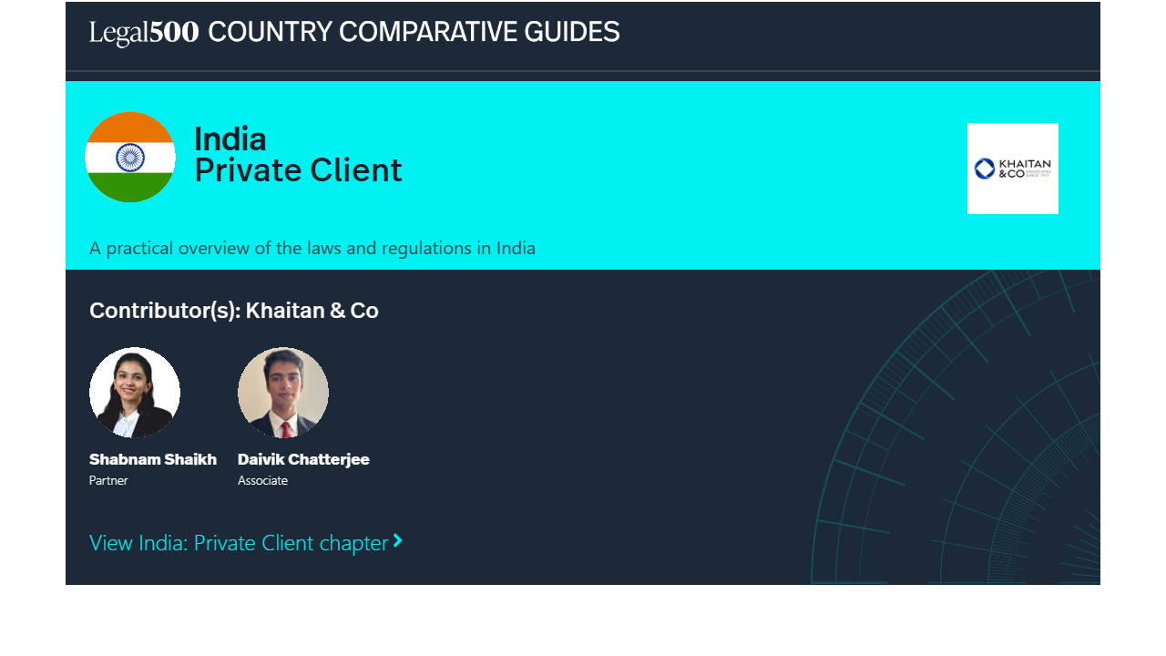 This country-specific Q&A provides an overview of Private Client laws and regulations applicable in India.