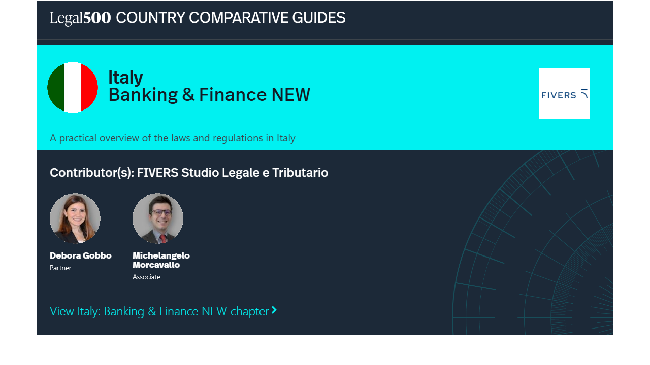 This country-specific Q&A provides an overview of Banking & Finance laws and regulations applicable in Italy.