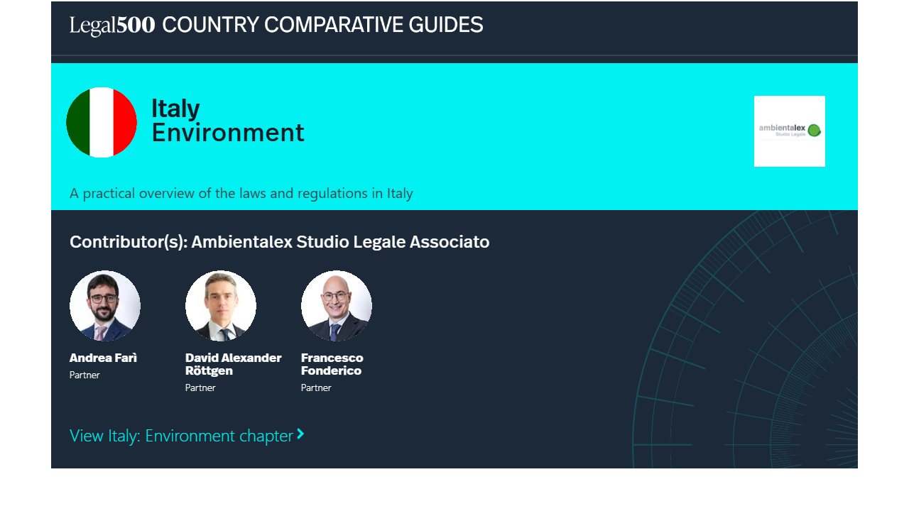 Overall, Italian environmental law is evolving in a fragmented yet increasingly coordinated manner, with significant efforts to align with EU regulations, simplify procedures, and address pressing environmental, economic, and geopolitical challenges.