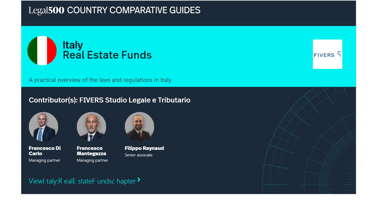 Italian law also provides for a specific regulatory framework applicable to real estate AIFs.