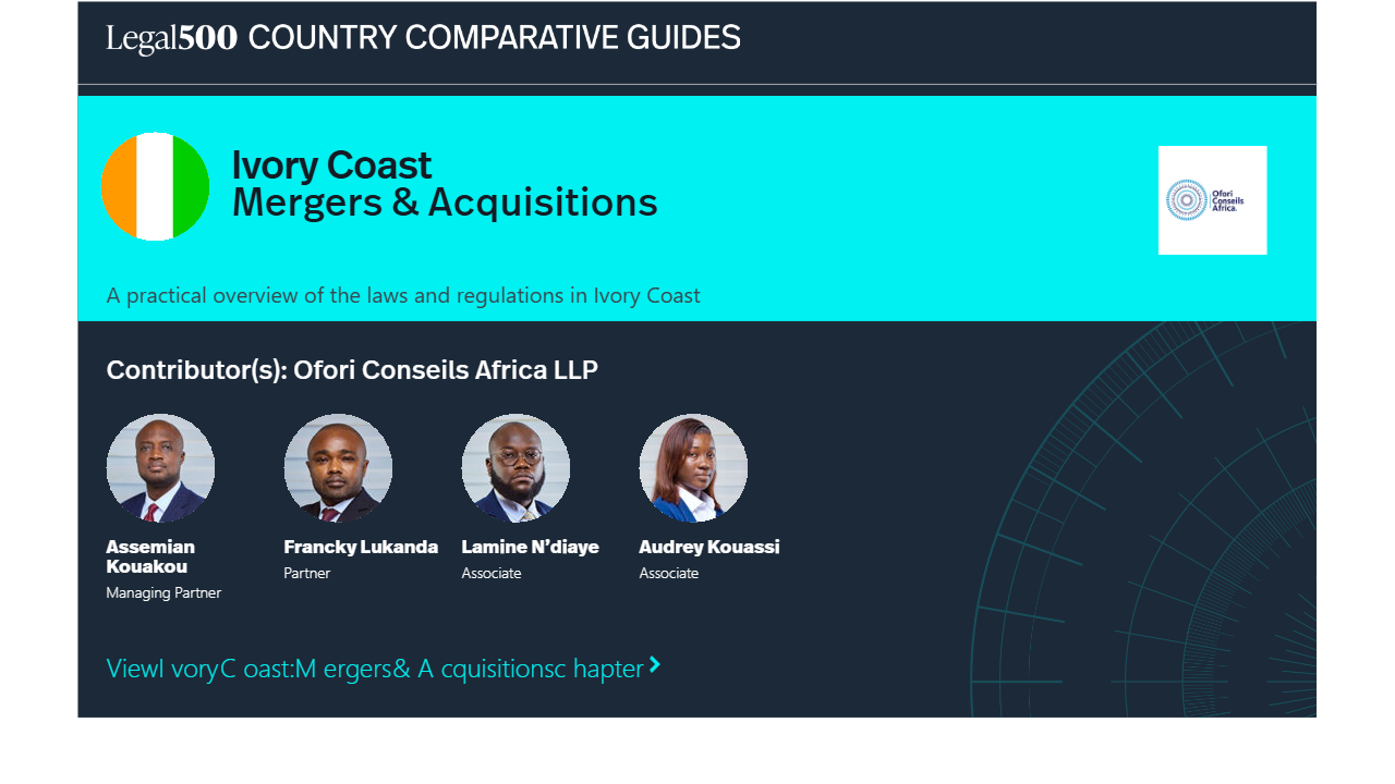 This country-specific Q&A provides an overview of Mergers & Acquisitions laws and regulations applicable in Ivory Coast.