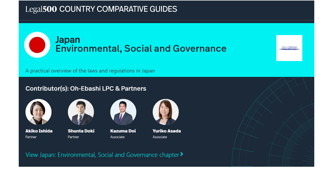 This country-specific Q&A provides an overview of Environmental, Social and Governance laws and regulations applicable in Japan.