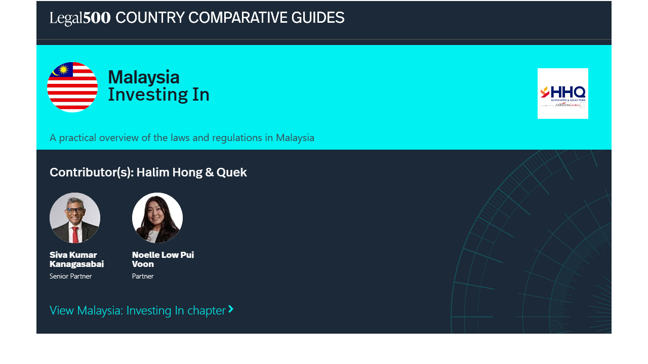This country-specific Q&A provides an overview of Investing In laws and regulations applicable in Malaysia.