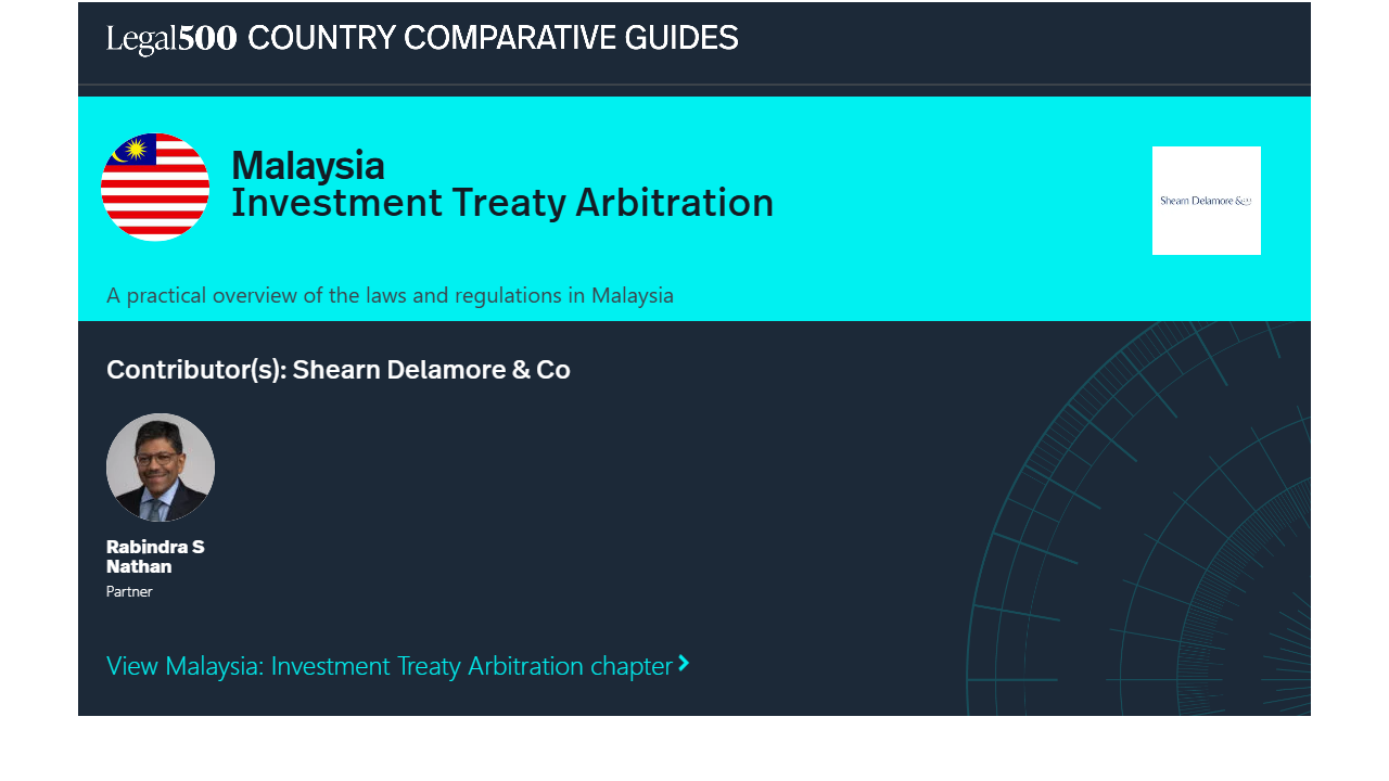 This country-specific Q&A provides an overview of Investment Treaty Arbitration laws and regulations applicable in Malaysia.