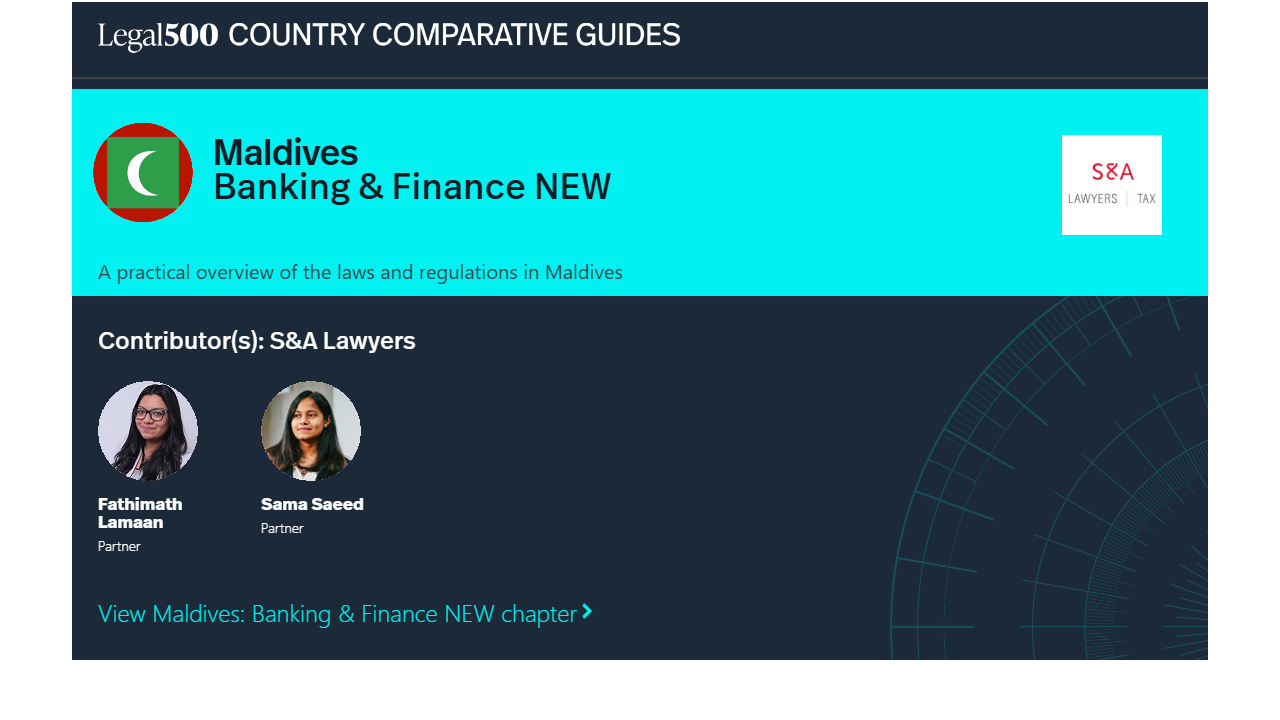 This country-specific Q&A provides an overview of Banking & Finance laws and regulations applicable in Maldives.