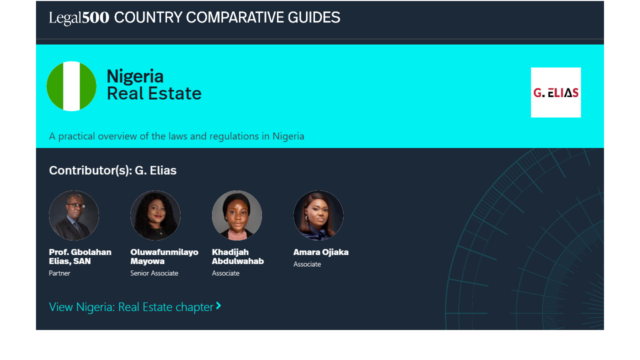 This country-specific Q&A provides an overview of Real Estate laws and regulations applicable in Nigeria.