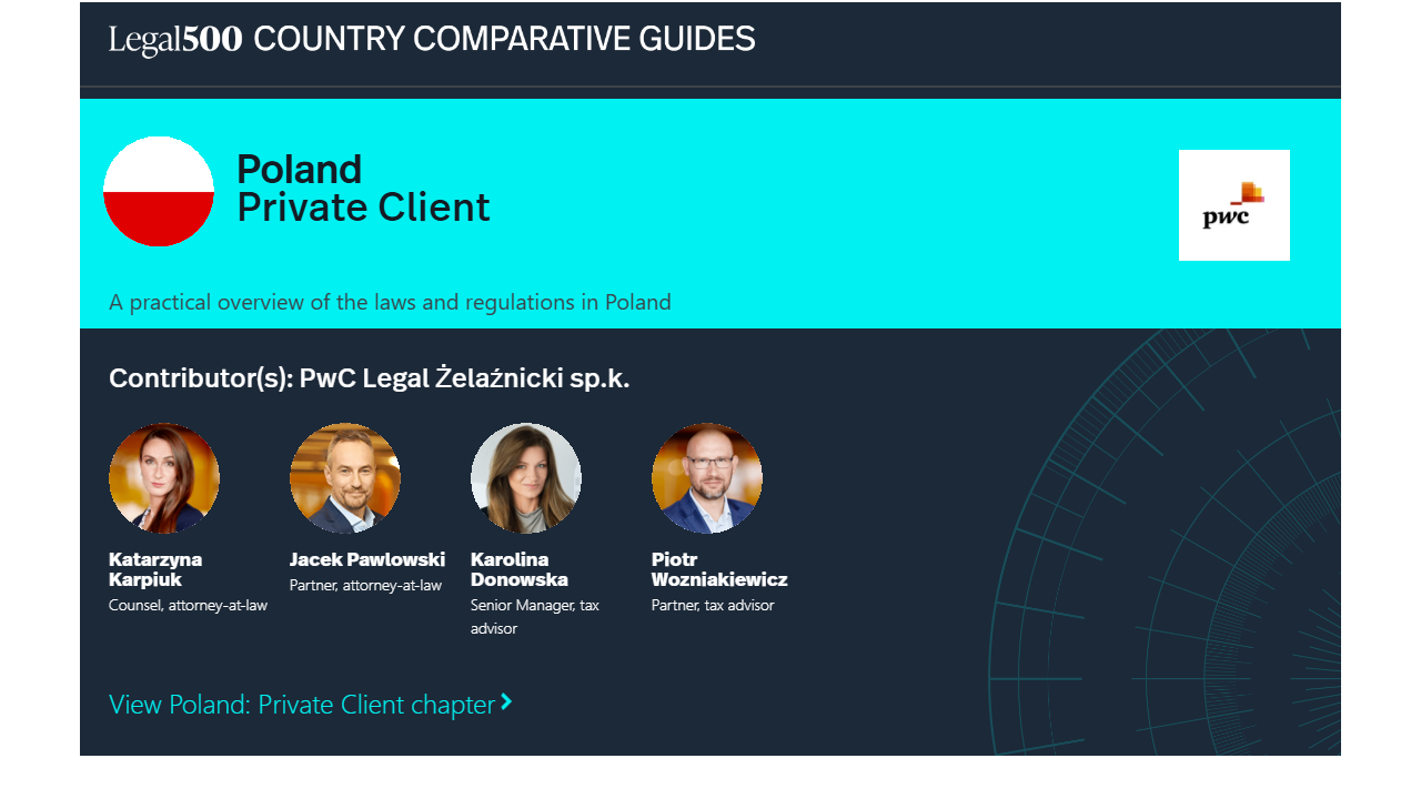 This country-specific Q&A provides an overview of Private client laws and regulations applicable in Poland.
