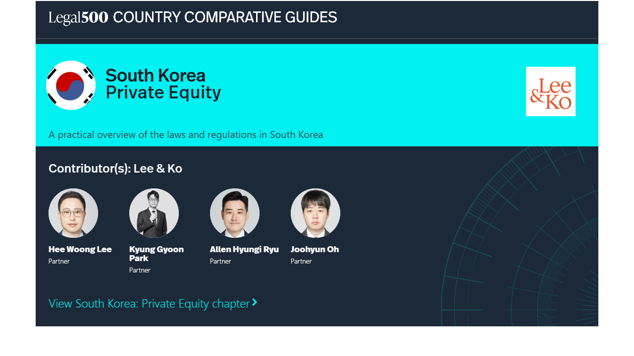 This country-specific Q&A provides an overview of Private Equity laws and regulations applicable in South Korea.