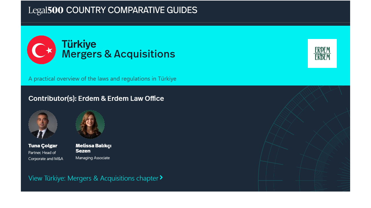 In Türkiye, mergers and acquisitions (‘M&A’) are regulated by various laws related to different legal fields. The Turkish Commercial Code numbered 6102 (‘TCC’) includes detailed provisions regarding the transfer of commercial enterprises, company mergers, spin-offs, and conversions.