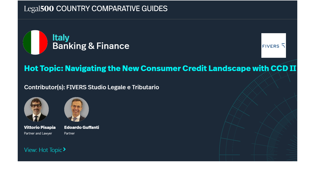 Italy implemented CCD II through Legislative Decree No. 212 of December 31, 2025 (the “Italian Decree”), which amends the Consolidated Banking Act (Legislative Decree No. 385/1993, the “TUB”) and related provisions. The Italian transposition not only incorporates the Directive’s substantive requirements but also introduces structural refinements that significantly affect credit institutions, financial intermediaries, and non-bank market participants.